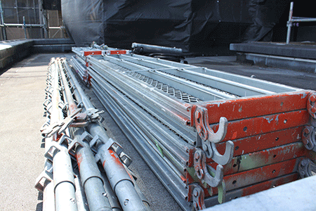 朝礼参加、安全ミーティング、工事の打合せ後、資機材を設置します。