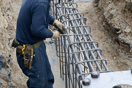 コンクリート基礎の内側には必ず鉄筋が使用されます。鉄筋工の大切な仕事のひとつです。